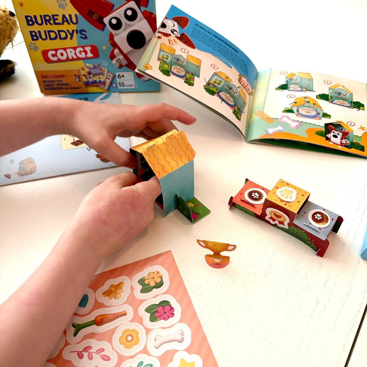 Eigenlijk hoef ik niet veel tekst te gebruiken over hoe tof dit Bureau Buddy’s Corgi-setje is. Het is LEGO, dus kwaliteit en het gaat lang mee. De andere vouwbouwwerkjes zijn misschien iets uitdagender voor jonge kinderen; dit waren ze zelfs voor mij. Maar ik ben ook niet altijd even geduldig met papiervouwen, en mijn dochters kennelijk ook niet. Toch is het helemaal goedgekomen en daarna vonden ze het erg leuk om stickers te plakken.