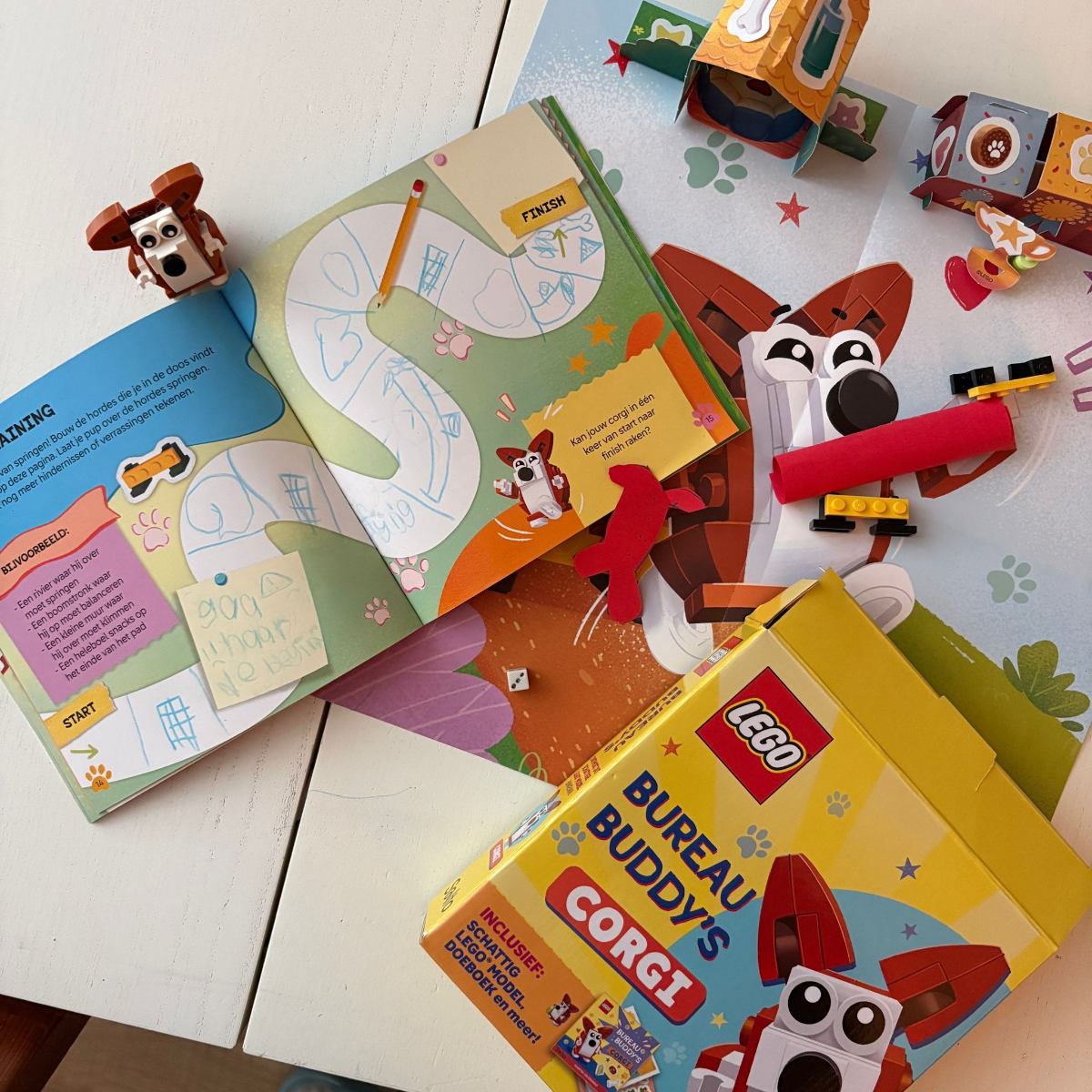 Het bijgeleverde boekje van Bureau Buddy’s Corgi is ook echt een goede toevoeging. Je kan je dier een naam geven, een spelletje spelen en meer. Echt heel erg leuk om setje zo tot leven te laten komen. Toen ik feedback aan mijn dochters van 7 en 12 vroeg, waren ze vrij direct en kortaf: “heel leuk” en “echt heel cute”. Verder moest ik ze niet te veel storen, want ze waren lekker creatief bezig met dingen maken en met verhalen verzinnen. Later moest ik natuurlijk wel zien wat ze allemaal hadden gemaakt; ze waren trots op hun bouwwerk.