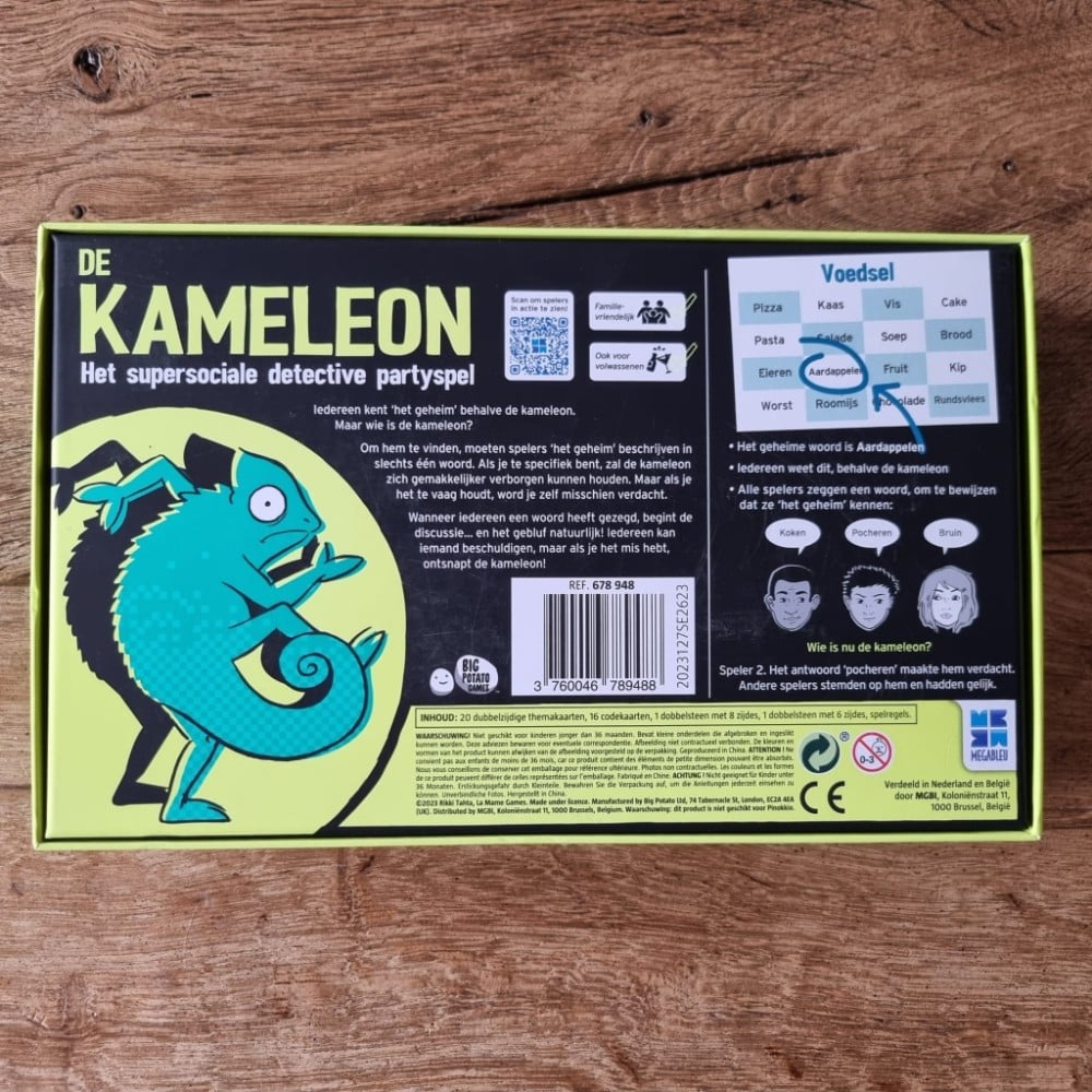 Hoe je De Kameleon speelt kun je in onderstaande video zien. Ideaal dat uitgever Megableu dit soort video’s maakt. Ik vind het soms ingewikkeld om een nieuw spel te begrijpen vanuit een spelbeschrijving. Vooral als de andere spelers verwachtingsvol zitten te kijken naar je en je het ook direct moet kunnen uitleggen.