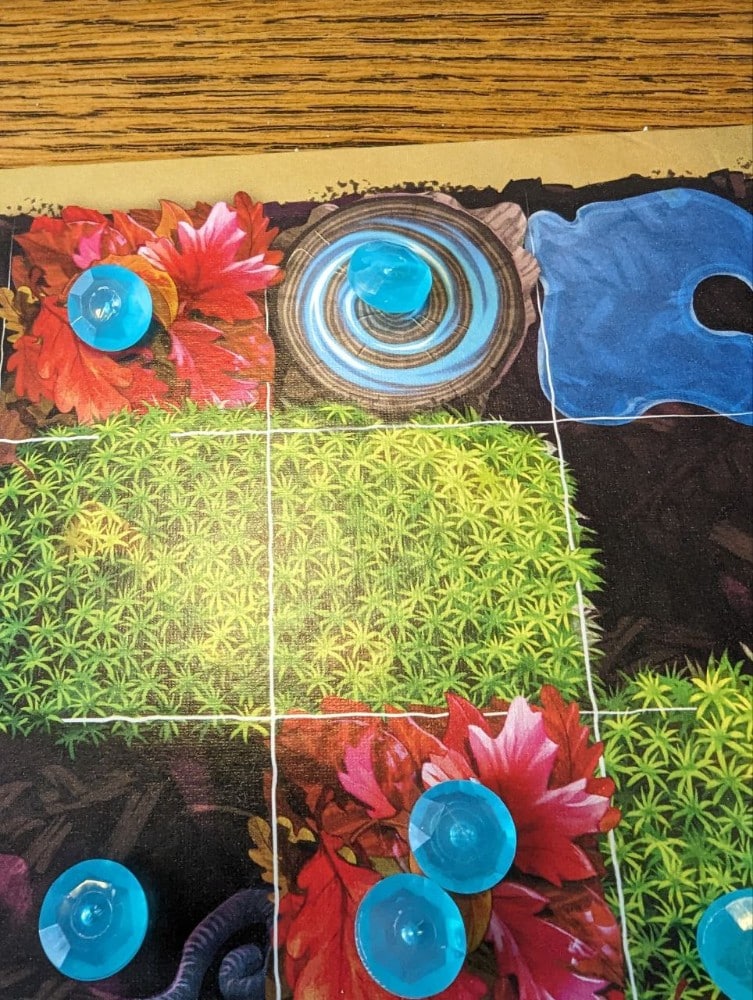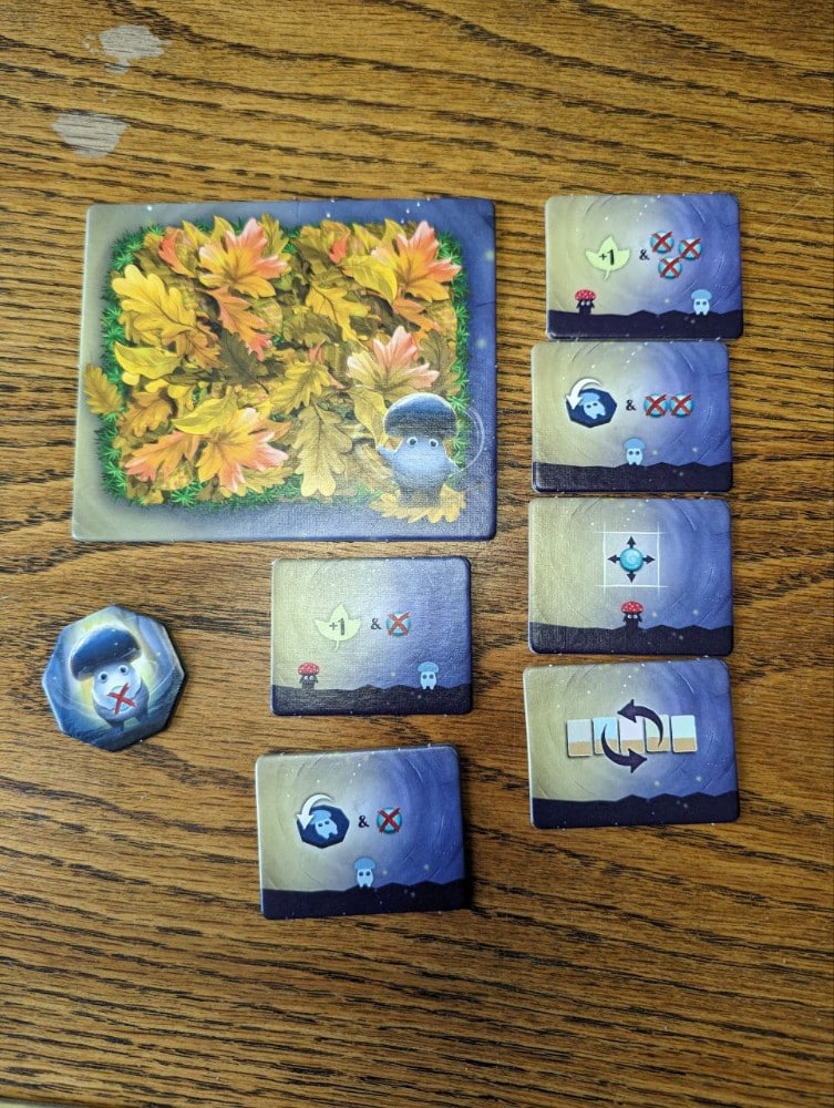 Tijd om te spelen! Mycelia heeft vrij simpele regels en is dan ook snel te leren. Mocht je nog niet bekend zijn met deckbuilding dan is dit wellicht even wennen, maar geeft wel een simpele instap. Elke speler begint met 20 dauwdruppels op zijn speelbord. Deze worden geplaatst zoals aangegeven op de opbouwkaart (zie galerij hieronder). Er is een gedeelde open rij kaarten, waarvandaan je kunt kopen om je deck aan te vullen met nieuwe bosbewoners. Door het slim spelen van kaarten probeer je zo snel mogelijk jouw dauwdruppels naar het tempelvakje op je spelersbord te krijgen. Deze verplaatsen dan naar de grote tempel van het leven.