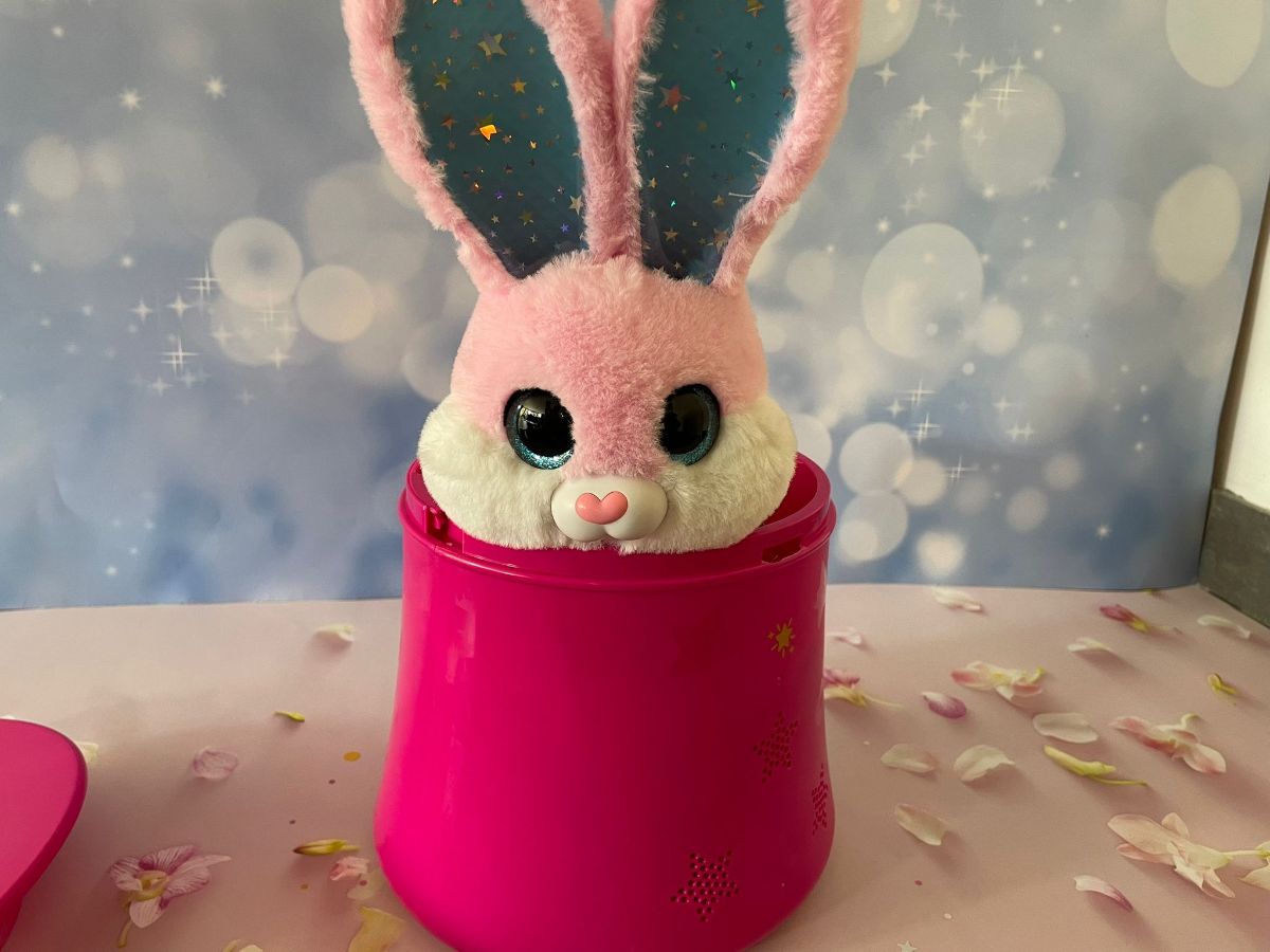 Abracadabra! Maak kennis met je schattigste nieuwe magische assistent. Zwaai met je magische sterrenstokje om de oren van je konijn te zien oplichten…TA DAA…Pak je konijntje eruit en zie hoe de confetti eruit springt. Ontdek het geheime vakje, hoeveel magische mini-konijntjes zal je aantreffen? Met meer dan 20 betoverende interactieve verrassingen is er zoveel magisch plezier te beleven.