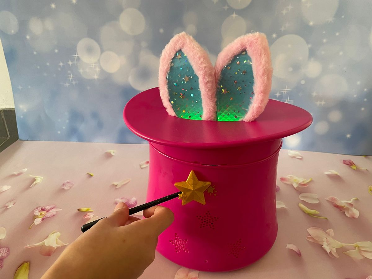 De leukste ervaring is het tevoorschijn toveren van je eigen Pets Alive Magic Bunny. Je haalt eerst de plastic laag eraf, en ontdekt daar een toverstafje. Met dat toverstafje moet je zwaaien bij de ster, totdat de oren van het konijn van rood, naar groen, naar regenboog kleuren. En dan hoor je hem springen binnen in zijn hoed, dan is hij er klaar voor om eruit te komen!
