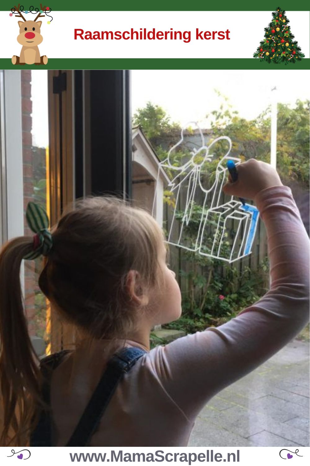 - Een raamschildering kerst met plakkaatverf