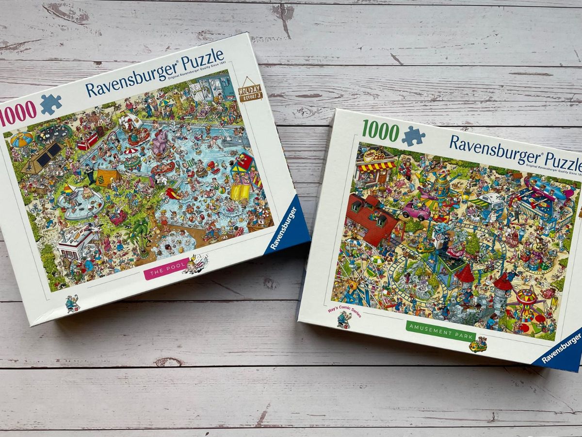 De dagen zijn weer kort, donker en guur. Tijd om weer lekker de puzzels van zolder te halen! Nu is er alleen één probleem: we hebben alle puzzels van zolder al een keer gedaan. Precies op tijd kwam deze week een geweldig perspakket van Ravensburger binnen. In dit pakket zaten 2 puzzels van Ray’s Comic Series: eentje over het zwembad, en eentje over een pretpark. Wij kunnen er dus weer tegenaan de komende tijd!
