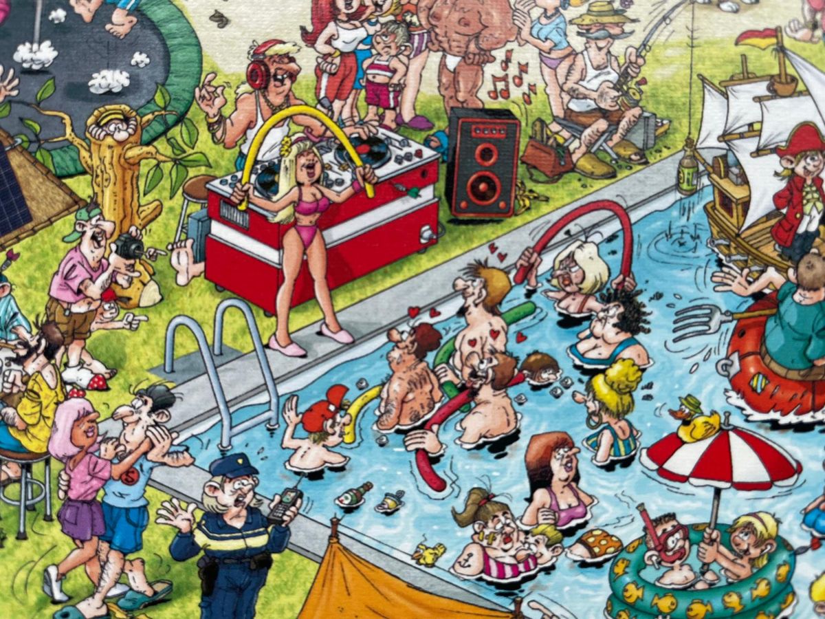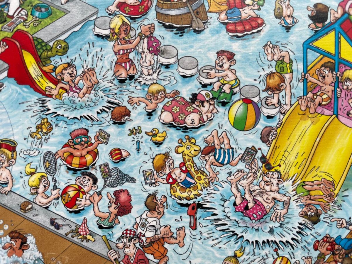 Mijn dochter kreeg de keuze met welke puzzel we zouden beginnen. Zonder te twijfelen ging ze voor de puzzel van het zwembad. En deze springt er zeker ook uit: lekker vrolijk, grappig en je verlangt er meteen van terug naar de zomer.