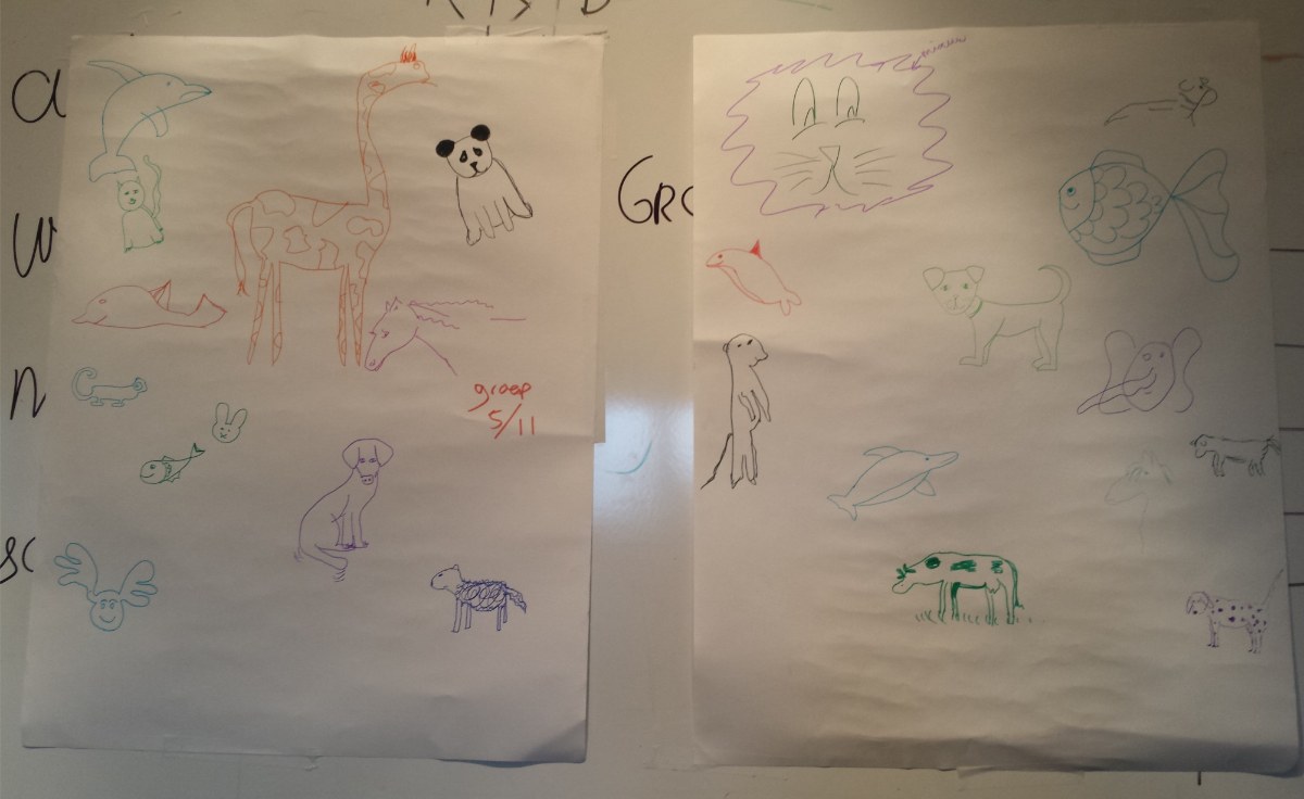 De kinderen moeten dan ook nog eens willen tekenen. Bij mij willen ze voornamelijk knutselen en spelen met al het speelgoed of verven en heel soms een keer een kleurplaat. Elk kind is ook hier weer anders in, gelukkig!