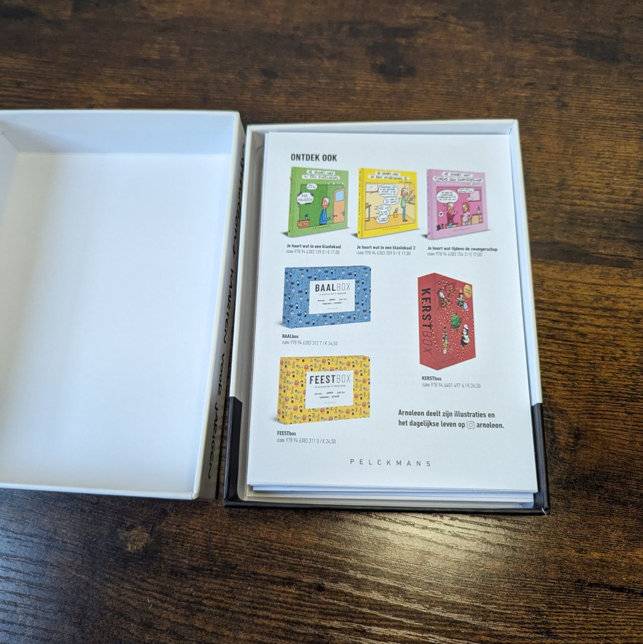 Deze set Arnoleons kaarten voor jarigen, en drie ‘je hoort wat’ boeken en meer zijn uitgegeven bij Pelckmans. Deze uitgever is een grote naam in de boekenwereld en heeft boeken voor vrijwel elke doelgroep. Toch hebben ze niet alleen boeken. Deze uitgever biedt bijvoorbeeld ook boeken voor opleidingen, kaarten en nog veel meer. Voor wie graag leest is er ons zusterplatform StoerLeesVoer. Deze verslinden boeken, waaronder die van Pelckmans, vooral hun jeugdboeken. Je kunt daar ook allerlei boekrecensies van Pelckmans vinden.