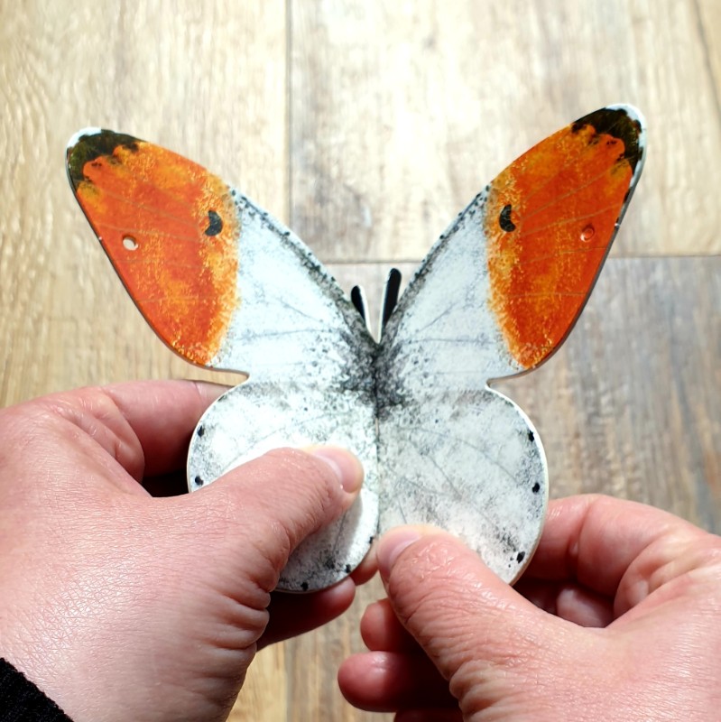 Elk model bestaat uit twee stukken die eenvoudig uit het boek te verwijderen zijn. Vervolgens schuif je de vlinders makkelijk in elkaar en kun je ze aan een touwtje ophangen. En wat ik ook heel prettig vind is dat als je de modellen niet gebruikt je ze gewoon weer uit elkaar kunt halen. En terug kunt doen in de karton pagina’s van het boek. Hier blijven ze netjes en nemen ze weinig ruimte in.