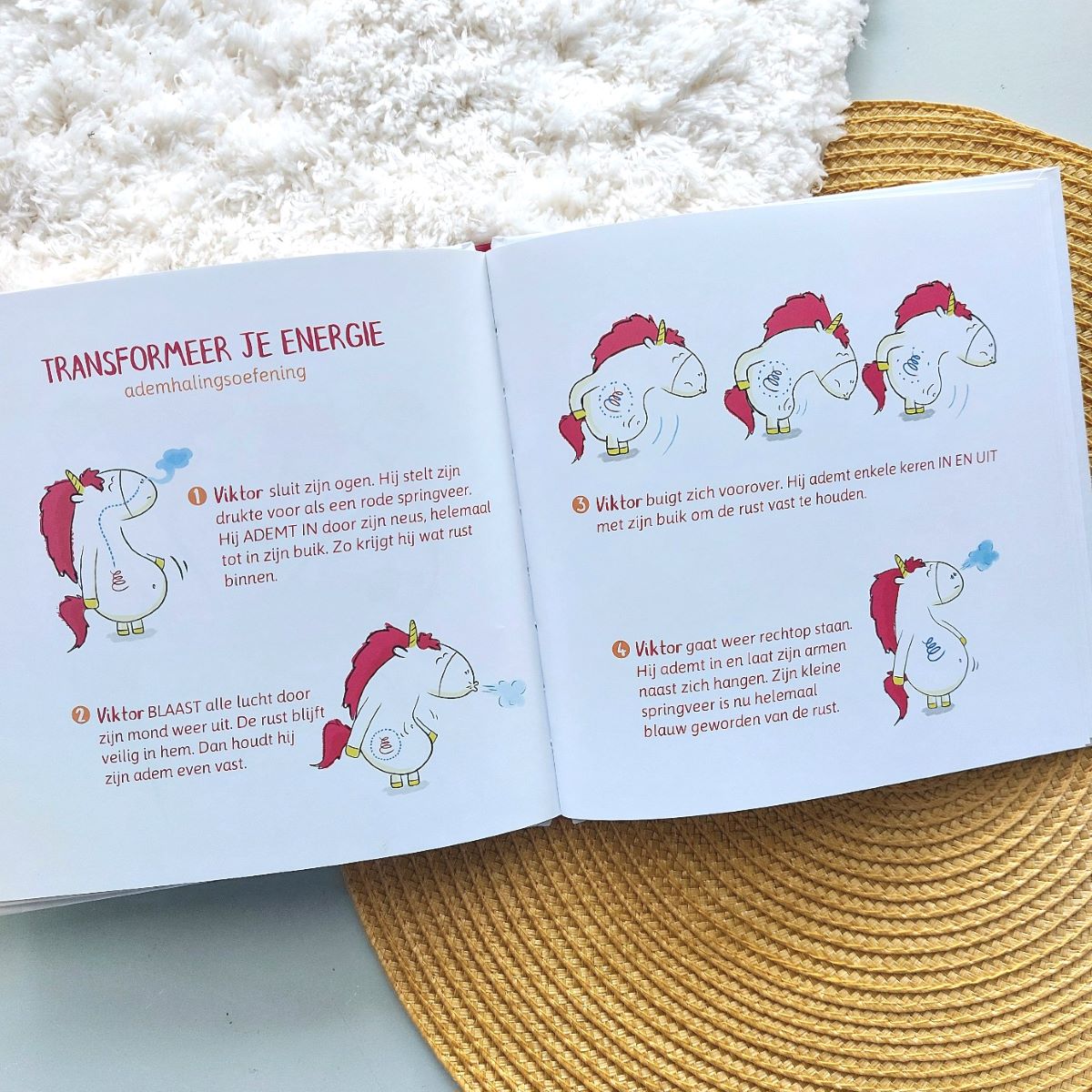 Steeds staat er in het boekje een combinatie van een belevenis, ademhalingsoefening en een tip hoe verder te gaan. Zo lezen we wat Viktor voelt als hij heel druk is en dat hij zijn energie kan inzetten om bijvoorbeeld wat te klussen. Ook sluit het verhaal steeds positief af met dat je trots mag zijn op jezelf, en dat het goed is dat iedereen uniek is.