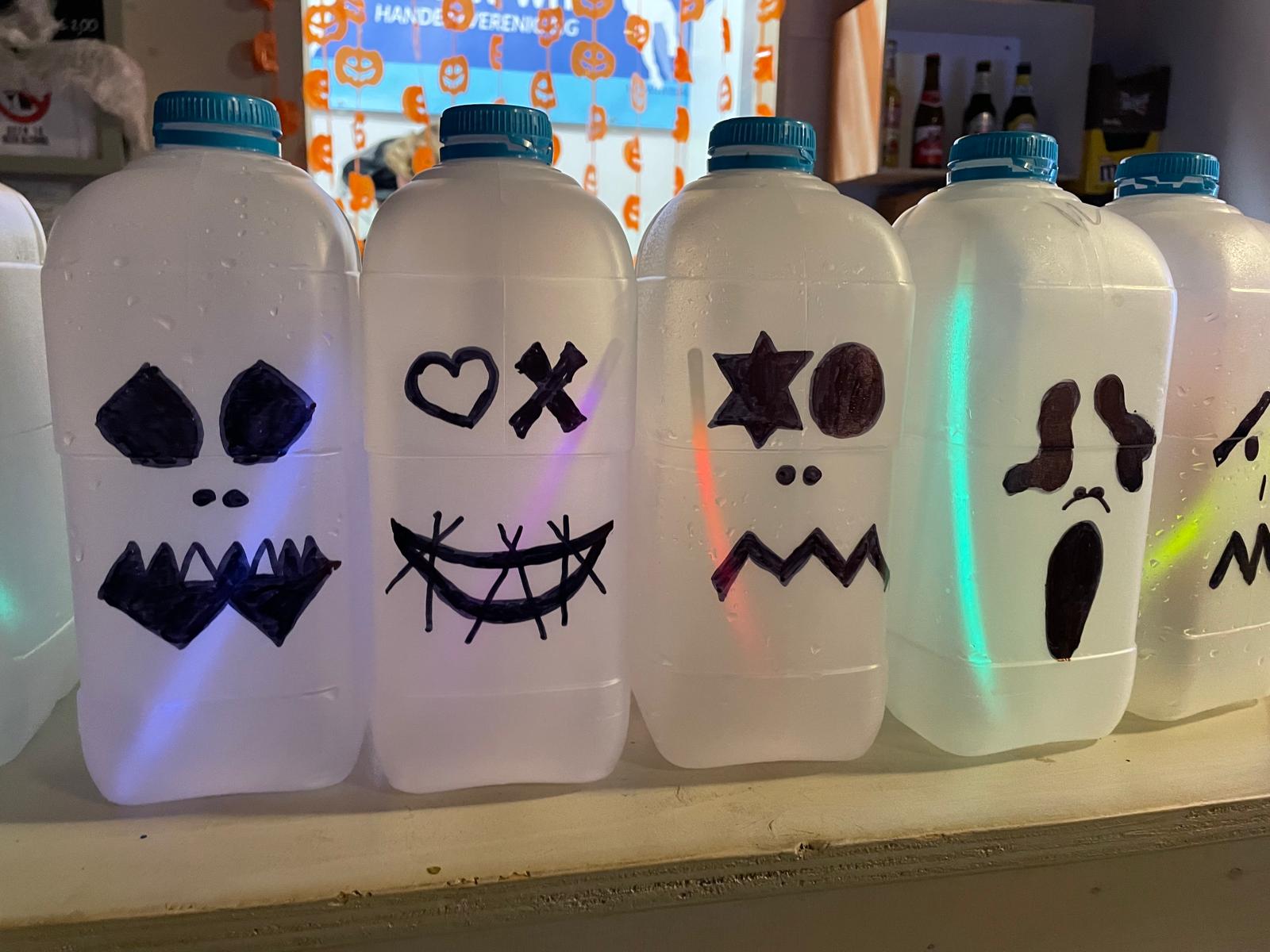 Als je wil dat je huis een beetje opvalt in het donker, dan is deze knutsel een leuk idee voor je! En je hebt voor deze Halloween decoratie knutsel niet veel materialen nodig. Begin ruim op tijd met het verzamelen van 2 liter melkpakken, van die plastic jerrycans. Ook heb je van die glowsticks nodig, die je voor een feestje kunt gebruiken.